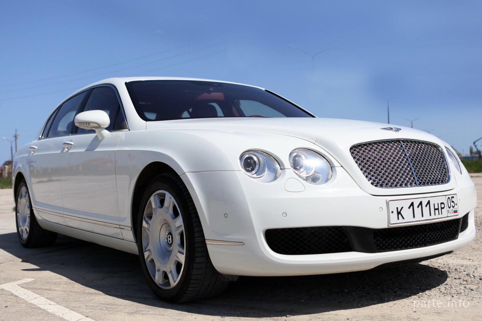 Бентли Континенталь Лонг Вместимость: 4 мест Цвет: Белый Год выпуска: 2007 Салон: Люк, кожа, ТВ, DVD, кондиционер.
